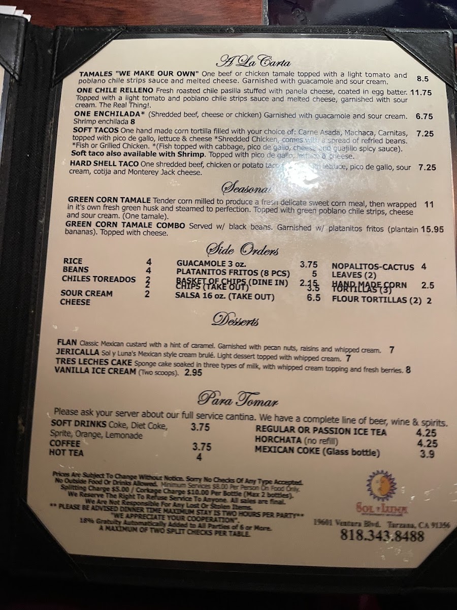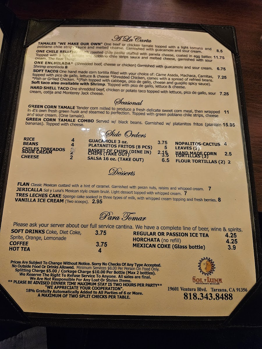 Discover the vibrant flavors of Mexico right in the heart of Tarzana at Sol y Luna. This charming Mexican restaurant, nestled along Ventura Blvd, offers an enticing selection of traditional dishes that will transport your taste buds straight to the sun-soaked streets of Mexico. With a reputation for authentic cuisine and a warm, inviting atmosphere, Sol y Luna is a perfect dining destination for families, couples, and friends alike.